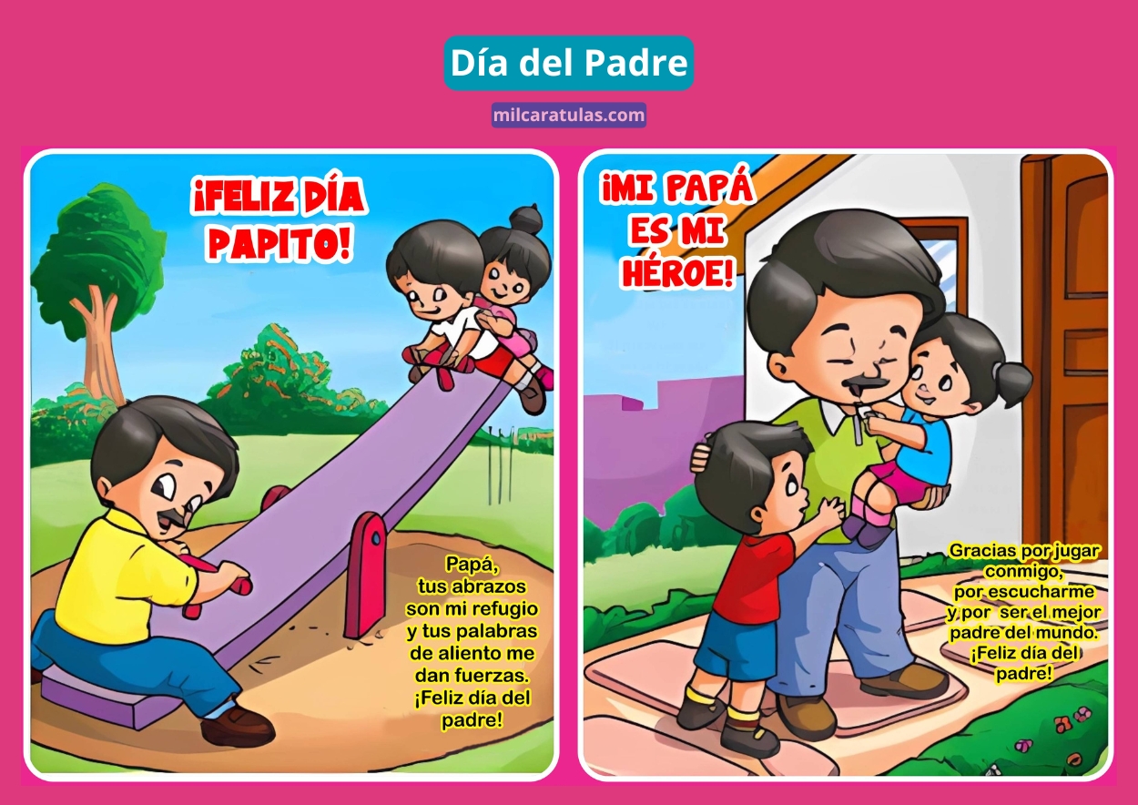 La lámina del «Día del Padre» captura el cariño y la conexión especial entre padres e hijos. Con tonos cálidos y escenas familiares, muestra momentos cotidianos llenos de afecto: un padre enseñando a su hijo a andar en bicicleta, leyendo juntos o disfrutando de una conversación tranquila. Los detalles reflejan la importancia de los lazos familiares y la dedicación paterna, con expresiones de orgullo, alegría y amor. La luz suave y las sonrisas sinceras transmiten el reconocimiento del esfuerzo y la guía que ofrecen los padres. Es un tributo visual a su compromiso, protección y amor incondicional.