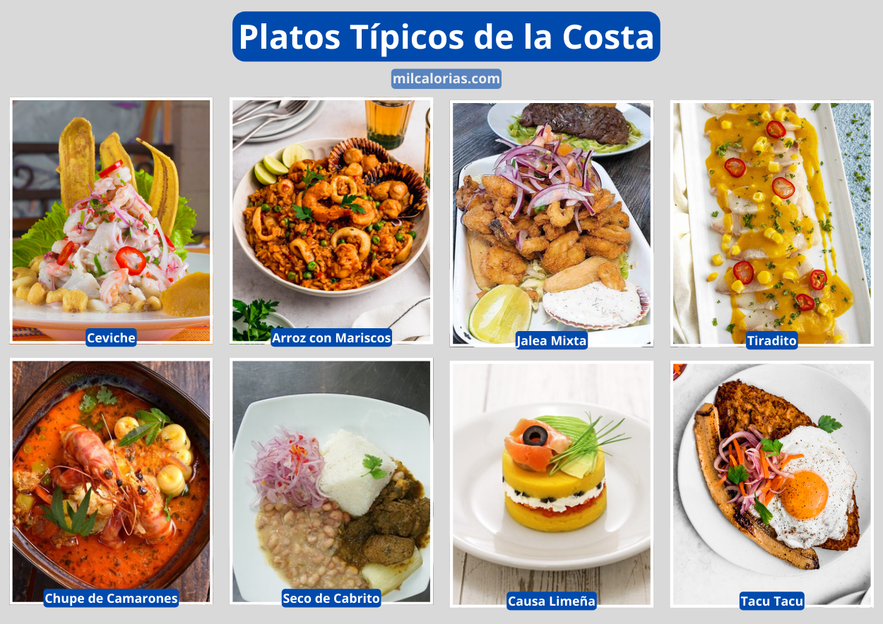 Estos platos son representativos de la rica diversidad culinaria de la costa peruana, donde los ingredientes frescos del mar y la tierra se combinan con técnicas y sabores únicos.